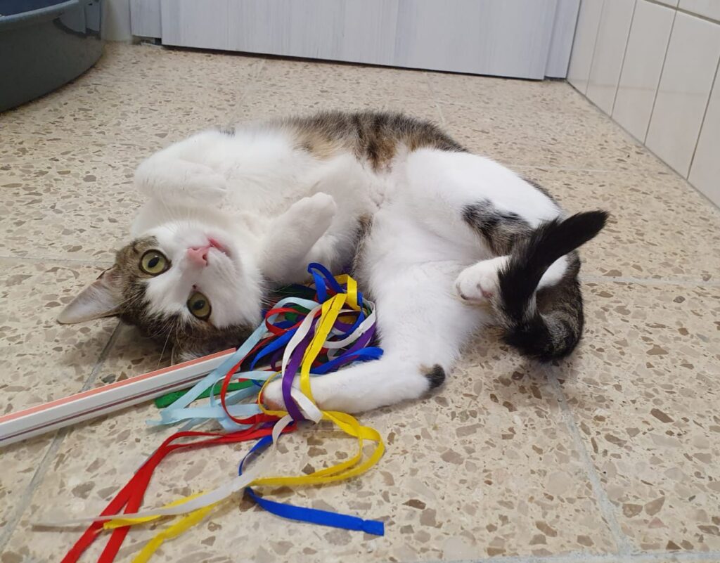 Während ihre zwei Brüder bereits in ein behütetes Zuhause ziehen durften, wartet Lina leider immer noch. Sie braucht immer nur einen kleinen Moment, bis sie auftaut, bei unserer geduldigen Katzenkuschlerin Marion gelingt ihr das sehr gut.
